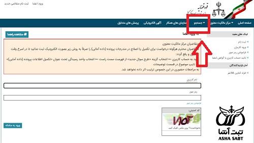 برای آغاز مراحل استعلام ثبت برند تجاری از سایت قوه قضاییه، ابتدا لازم است آدرس سایت مرکز مالکیت معنوی یعنی ipm.ssaa.ir در مرورگر جستجو شده و مطابق تصویر زیر، شخص وارد صفحه اصلی سایت شود. سپس از منوی بالای صفحه، گزینه جستجوی را انتخاب نماید.