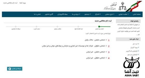 با انتخاب گزینه ثبت نام متقاضی، صفحه ای مشابه تصویر زیر نمایش داده می شود. در این مرحله، چهار نوع کاربری ارائه شده که لازم است متقاضی با توجه به نوع شخصیت خود، یکی از گزینه ها را انتخاب کند.