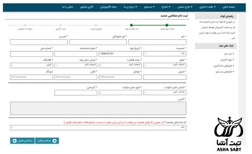 ورود اطلاعات اشخاص باید در فرم مخصوصی که در تصویر زیر مشاهده می شود انجام گیرد. دقت در تکمیل صحیح این بخش ضروری است.