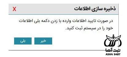 با انتخاب دکمه تایید ثبت نام، پیغام تایید اطلاعات برای شما نمایش داده می شود که لازم است با انتخاب گزینه بلی، ثبت نهایی اطلاعات انجام شود.