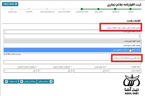 پس از ثبت اطلاعات اشخاص، نوبت به وارد کردن اطلاعات مربوط به علامت می رسد. این اطلاعات شامل توصیف علامت، رنگ های به کار رفته، عنوان ترجمه شده علامت و سایر جزئیات آن می باشد. این مرحله یکی از مهم ترین بخش های ثبت برند به شمار می رود، بنابراین لازم است اطلاعات با دقت کامل ثبت شوند.