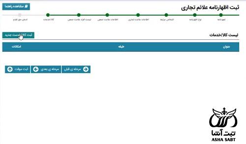 پس از ثبت کالاها و خدمات مورد نظر، شخص باید گزینه افزودن انتخاب شود تا لیست نهایی در صفحه نمایش داده شود. سپس با کلیک بر روی گزینه مرحله بعد، متقاضی وارد بخش بعدی فرآیند می شود.