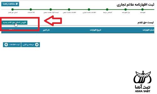 در مرحله بعد، متقاضی باید نوع اظهارنامه مورد نظر را انتخاب کند. در این بخش، لازم است گزینه ثبت اظهارنامه جدید مطابق تصویر انتخاب شود.