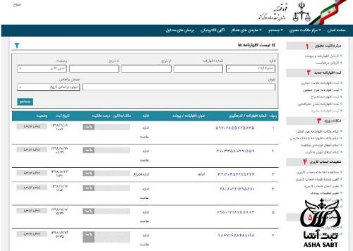 در نهایت، متقاضی می تواند با مراجعه به بخش لیست اظهارنامه ها، وضعیت درخواست خود را پیگیری نماید و استعلام علامت تجاری را مشاهده کند.