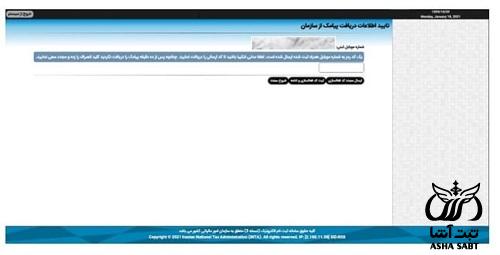 در آخرین مرحله، فرد پیام تکمیل بودن اطلاعات را دریافت میکند. سپس متقاضی باید روی گزینه تایید نهایی اطلاعات کلیک کند تا به صفحهای هدایت شود که در صورت صحت اطلاعات، باید بر روی گزینه «تأیید اطلاعات و دریافت کد رهگیری» کلیک نماید تا کد رهگیری ۱۰ رقمی خود را دریافت کند.
