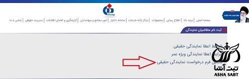 سپس فرد به صفحه جدیدی هدایت می شود که لازم است در آنجا بر روی گزینه ثبت نام متقاضیان نمایندگی کلیک نماید.