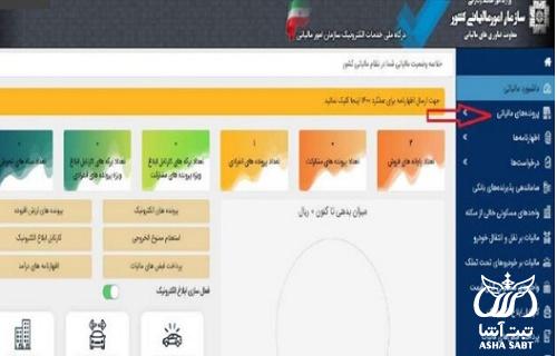 در صفحه زیر، خلاصه ای از کلیه اطلاعات مالیاتی موجود شخص نشان داده می شود و متقاضی می بایست از منوی سمت راست تصویر، گزینه "پرونده های مالیاتی" را کلیک کند.
