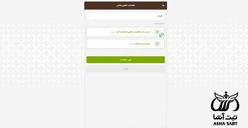 پس از وارد کردن اطلاعات خواسته شده شخص می بایست کد تاییدی که به تلفن همراه او پیامک شده را وارد نماید.