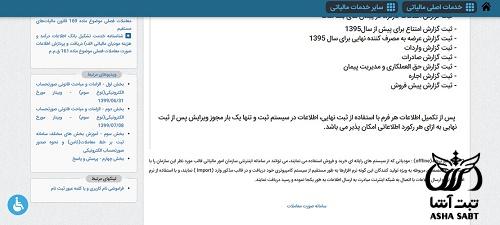 به منظور ثبت و تایید فاکتور خرید در سامانه مودیان اشخاص می بایست ابتدا به سامانه عملیات الکترونیکی امور مالیاتی به نشانی tax.gov.ir مراجعه نمایند. با مراجعه به این صفحه ای مطابق تصویر ذیل نمایش داده می شود که اشخاص لازم است بر قسمت صورت معاملات فصلی الکترونیکی کلیک نمایند.