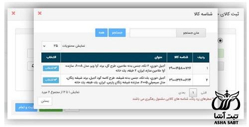 در این مرحله، شخص متقاضی می بایست گروه کالا و طبقه کالای مورد نظر را انتخاب کند.