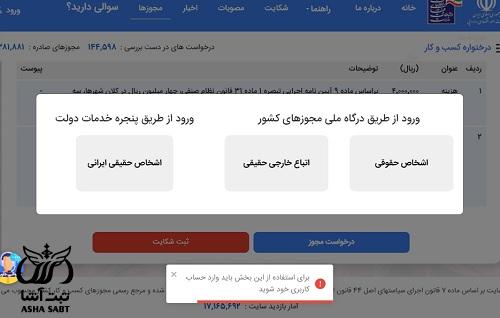هزینه ثبت درخواست در درگاه ملی مجوز های کشور