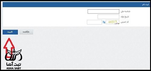 شخص در ادامه مسیر به بخش جدید وارد شده و در این قسمت بایستی شناسه ملی، تاریخ تولد و کد امنیتی را وارد نموده و بر روی دکمه تایید کلیک نماید.